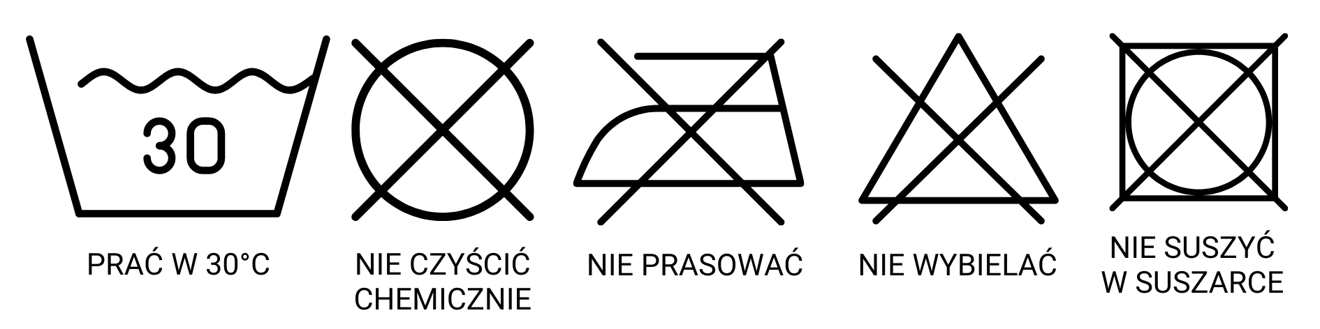 Prať pri 30 °C, nečistiť chemicky, nežehliť, nebieliť, nesušiť v sušičke.