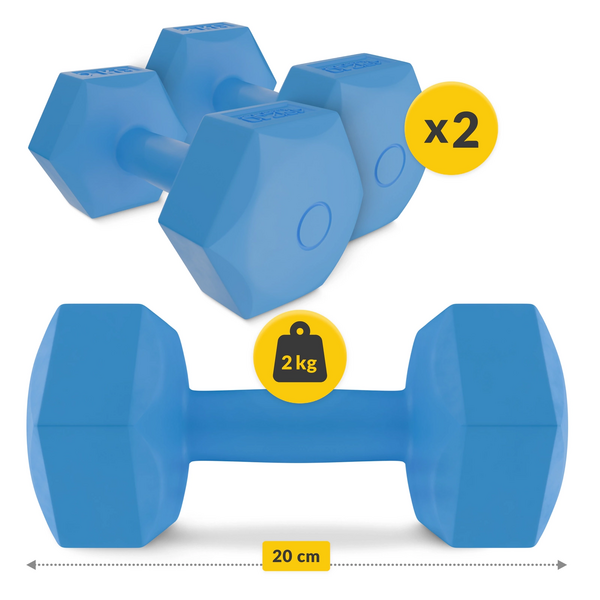 ✅ Praktické a pohodlné : činky majú protišmykový povrch a sú profilované, čo zaisťuje veľmi pohodlný úchop. Vďaka tomu, že sú vyrobené z PVC, neabsorbujú pot a vlhkosť, takže sa ľahko udržujú v čistote.